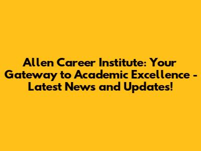 Allen Career Institute: Your Gateway to Academic Excellence - Latest News and Updates!