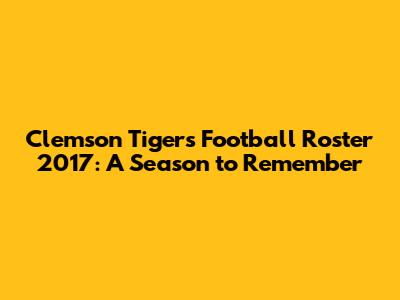 Clemson Tigers Football Roster 2017: A Season To Remember
