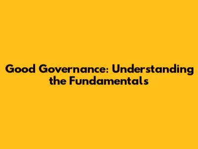 Good Governance: Understanding The Fundamentals