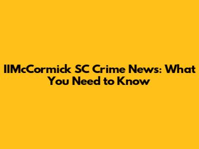 IIMcCormick SC Crime News: What You Need To Know