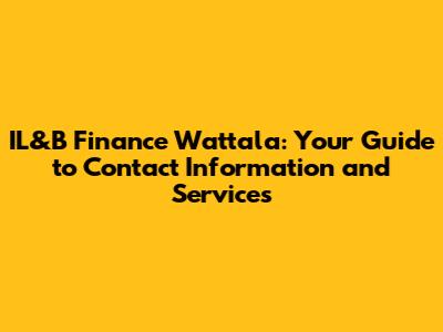 Getting in Touch: The IL&B Finance Wattala Contact Number and More