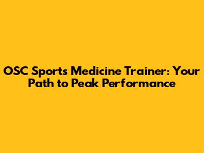 OSC Sports Medicine Trainer: Your Path To Peak Performance