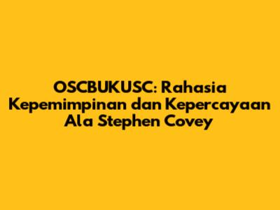 OSCBUKUSC: Rahasia Kepemimpinan Dan Kepercayaan Ala Stephen Covey