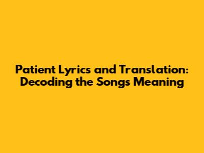 Patient Lyrics And Translation: Dive Deep Into The Song!