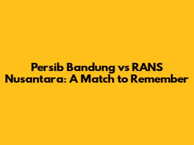 Hey guys! Let's dive into the electrifying match between Persib Bandung and RANS Nusantara! This game wasn't just a regular football match; it was a rollercoaster of emotions, skillful plays, and unforgettable moments. From the first whistle to the final seconds, both teams showcased their best, keeping fans on the edge of their seats. The energy in the stadium was palpable, with roaring cheers and chants echoing through the stands. If you missed it, no worries – we've got you covered with all the juicy details and highlights you need to know. Get ready to relive the best moments, analyze the key plays, and celebrate the incredible talent on display. Let's break down everything that made this match a must-watch for any football enthusiast. We'll explore the strategic battles, the individual brilliance, and of course, those heart-stopping goals that had everyone talking! This wasn't just a game; it was a spectacle of Indonesian football at its finest. So, buckle up and let's get started.
