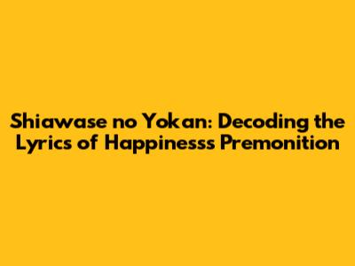 Hey everyone! Today, we're diving deep into a song that's got a title that just screams good vibes: Shiawase no Yokan. If you've stumbled upon this track, you're probably curious about what those beautiful Japanese lyrics actually mean, right? Well, you've come to the right place, guys! We're going to break down the lyrics, explore the meaning, and get a real feel for the emotion packed into this song. Get ready to understand the premonition of happiness on a whole new level.