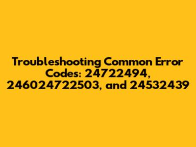 Hey everyone! Today, we're diving deep into some of those pesky error codes that can pop up when you least expect them. We're talking about 24722494, 246024722503, and 24532439. You know, the ones that make you scratch your head and wonder what on earth is going on with your system. Don't worry, guys, we've all been there! These codes can appear for a bunch of reasons, and understanding them is the first step to getting things back up and running smoothly. So, grab a coffee, settle in, and let's break down what these numbers might mean and how you can tackle them like a pro. We'll cover potential causes, step-by-step solutions, and some preventative tips to keep these gremlins at bay. Our goal here is to make troubleshooting less intimidating and more of a straightforward process, so you can get back to what you were doing without any more digital drama.