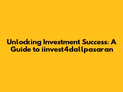 Unlocking Investment Success: A Guide To Iinvest4dallpasaran