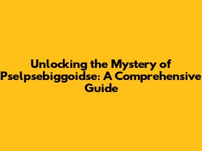 Unlocking The Mystery Of Pselpsebiggoidse: A Comprehensive Guide