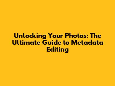 Unlocking Your Photos: The Ultimate Guide To Metadata Editing