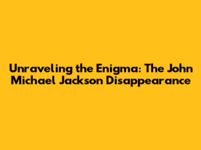 Unraveling The Mystery: John Michael Jackson's Disappearance