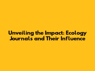 Unveiling The Impact: Ecology Journals And Their Influence